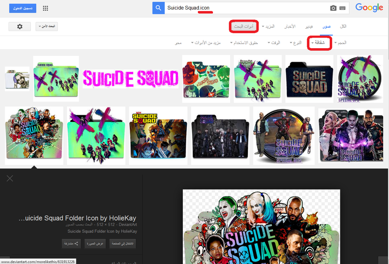 • لذا سنضطر للطريقة الأسهل..وهي الذهاب لمنجم العم جوجل (الصور) ونبحث عن اسم الفيلم بإرفاق كلمة Icon معه..ستجد الكثير من الصور لكننا نحتاج لصورة بصيغة PNG وشفافة..نعم أعلم أني ذكرت عكس ذلك بالسطر السابق (للتسهيل: أختر من أدوات البحث/اللون: شفافة):